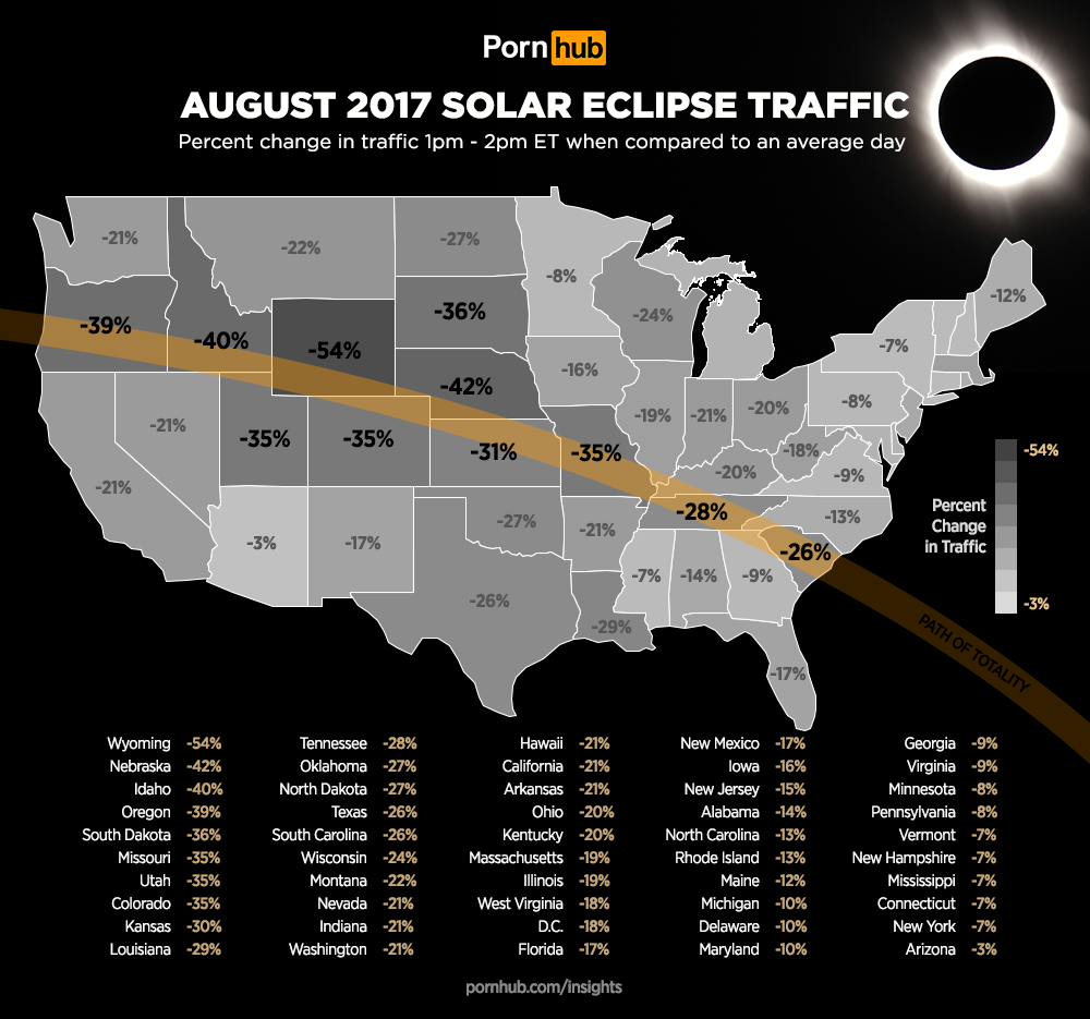 While holidays typically come around once a year, some events only happen once in a century. When the Solar Eclipse crossed over the United States on August 21st, our statisticians found significant traffic drops especially in states along the path of totality.