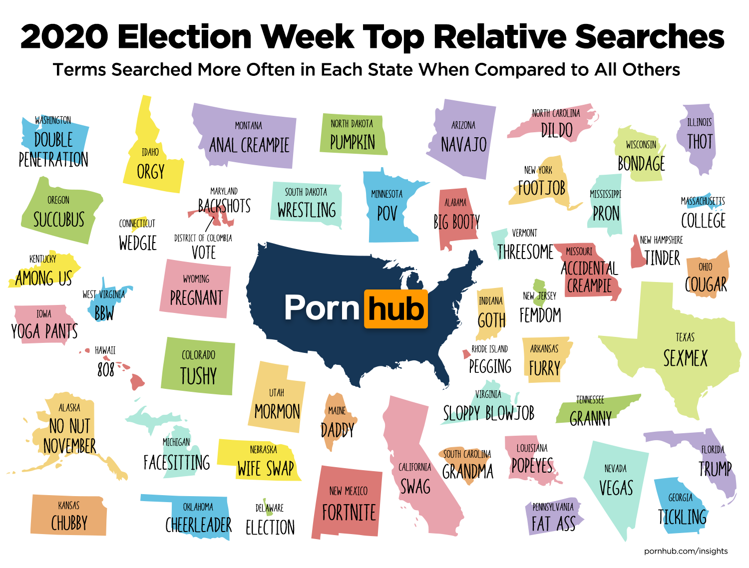 Pornhub’s statisticians weren’t able to predict who each state voted for, but they were able to share what each state was searching for during election week!