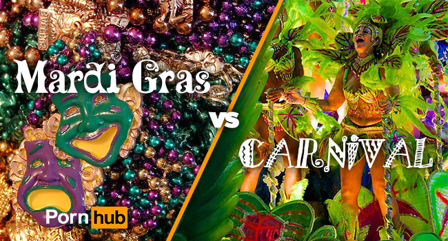 Although celebrated in many places, Mardi Gras is most often associated with New Orleans, and Rio De Janiero with Carnival. Our friends at Vocativ asked our statisticians to see which of the two festivals gets Pornhub visitors more excited.