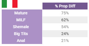 If we consider the 5 categories watched more in Italy when compared to the rest of the world, the resulti s the same: Mature and MILF rule.