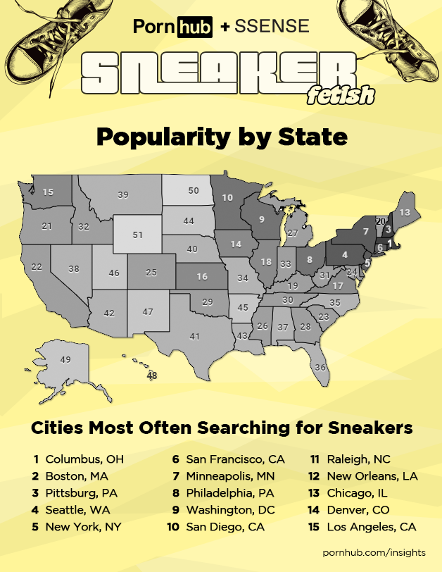 Pornhub Insights has delved into lots of interesting fetishes over the years, including Feederism, Wedgies, Golden Showers, Cuckolding, Spectrophilia, Bronies and even Clowns. In today’s edition of Insights, we’re joined by the editorial team at SSENSE to dive feet first into the sneaker fetish.